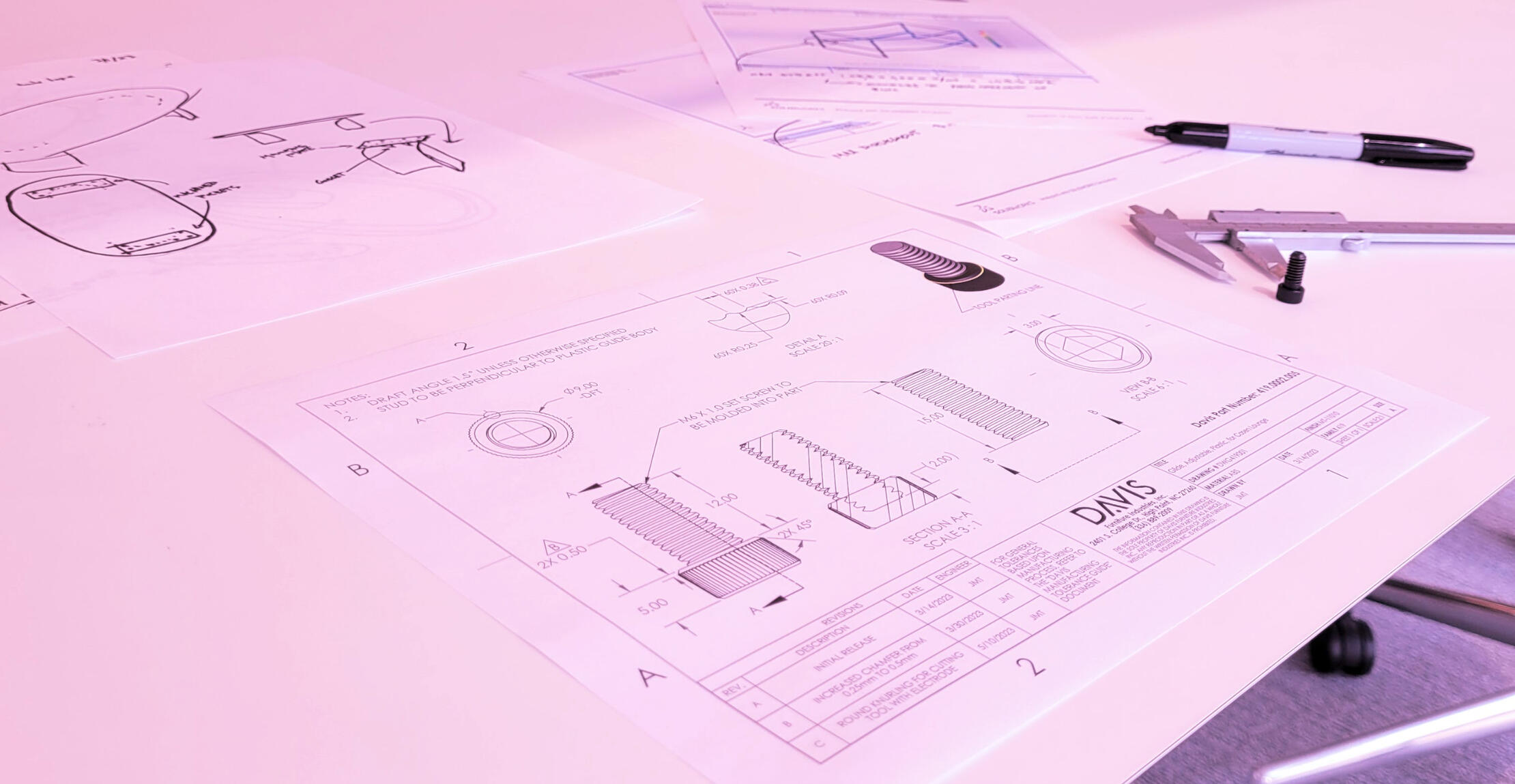 Helio was my first project at Davis Furniture Industries and introduced me to the company's processes and extreme focus on small details. This table line showcases the company's powdercoat options with a solid steel top and legs. The little details and finishes on this table taught me how to use engineering methods to produce a highly polished product.